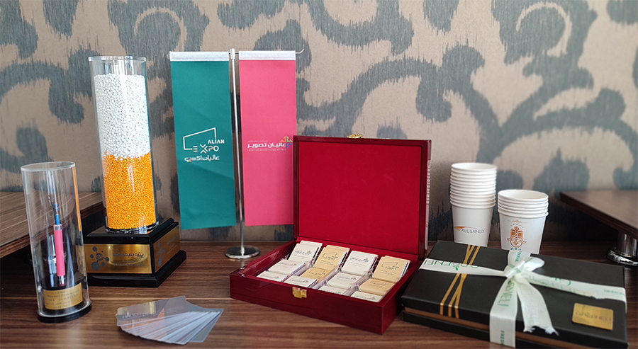 برندینگ کامل غرفه ، هدایا ، شکلات و وسایل پذیرایی نیز از دیگر خدمات مجموعه عالیان اکسپو بوده که به مشتریان در صورت نیاز و از دو هفته قبل از آغاز نمایشگاه میتوانند سفارش خود را انجام دهند.